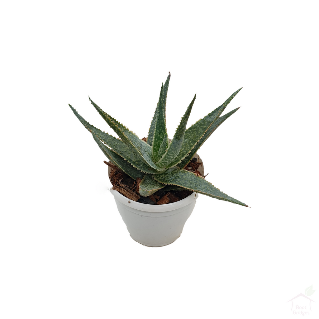 Plenty of bright sunlight will not only enrich ‘Oik’s unique colour but will also give this slow-growing plant the best opportunity to reach a mature size of 12 inches tall and wide. Like all Aloe, care must be taken to avoid overwatering – the ‘soak and dry’ method will work well, and porous soil with excellent drainage will provide added protection against rot and other ills. While ‘Oik’ is an overall very hardy plant, take care to protect its leaves from frost during the cooler months, as it is not freezing tolerant.